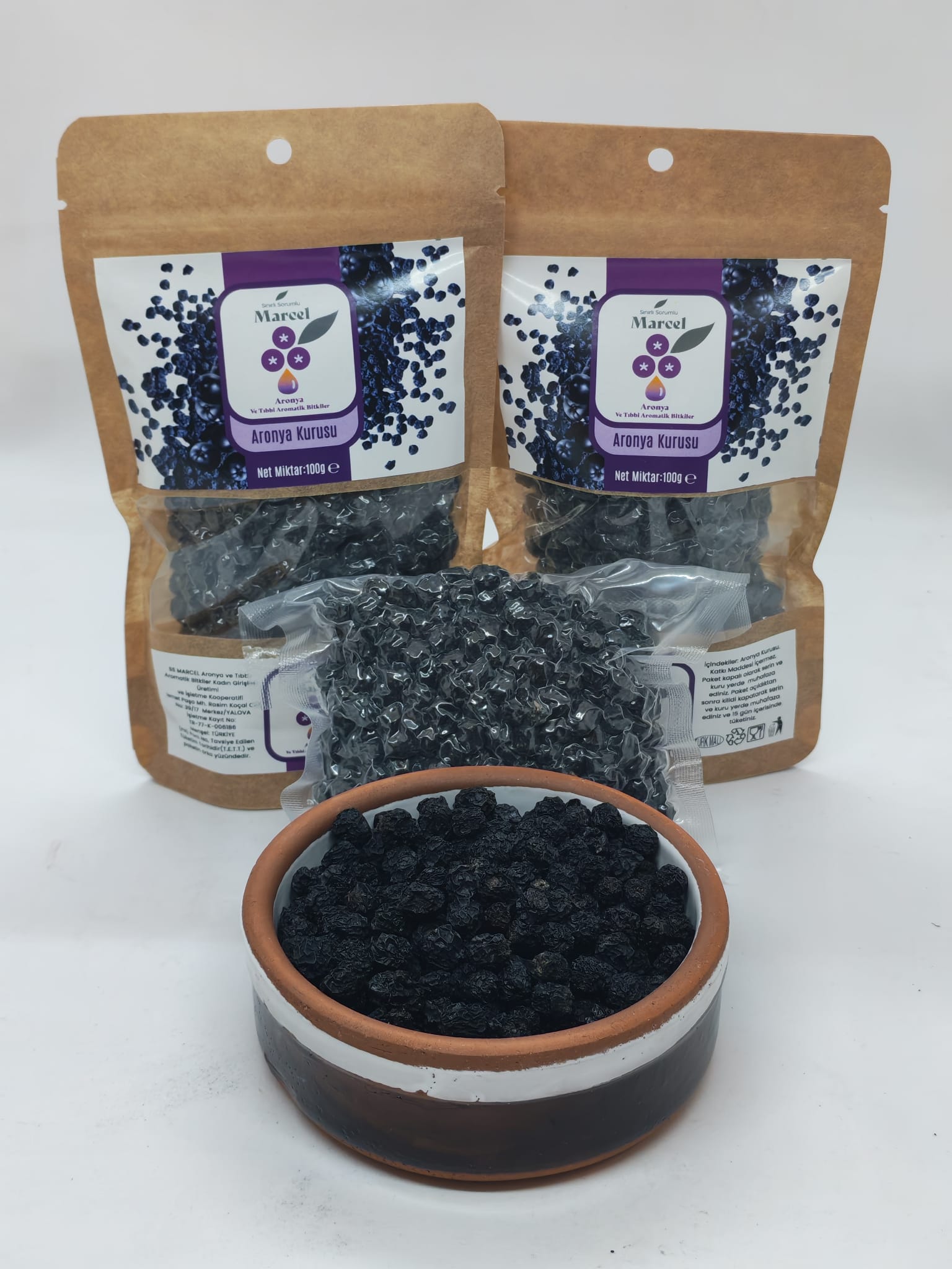 - Taze aronya meyvelerinin özenle kurutulmasıyla elde edilir.
